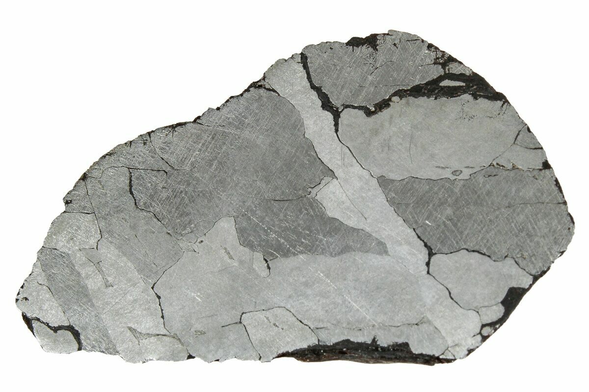 Most iron meteorites have distinctive, geometric patterns called Widmanstätten patterns, which become visible when the meteorite is cut and acid etched. These patterns are criss-crossing bands of the iron-nickel alloys kamacite and taenite that slowly crystalized as the core of the meteorites' parent bodies slowly cooled. Such large alloy crystallizations for mover millions of years and do not occur naturally on Earth, further proving that iron meteorites come from extraterrestrial bodies.