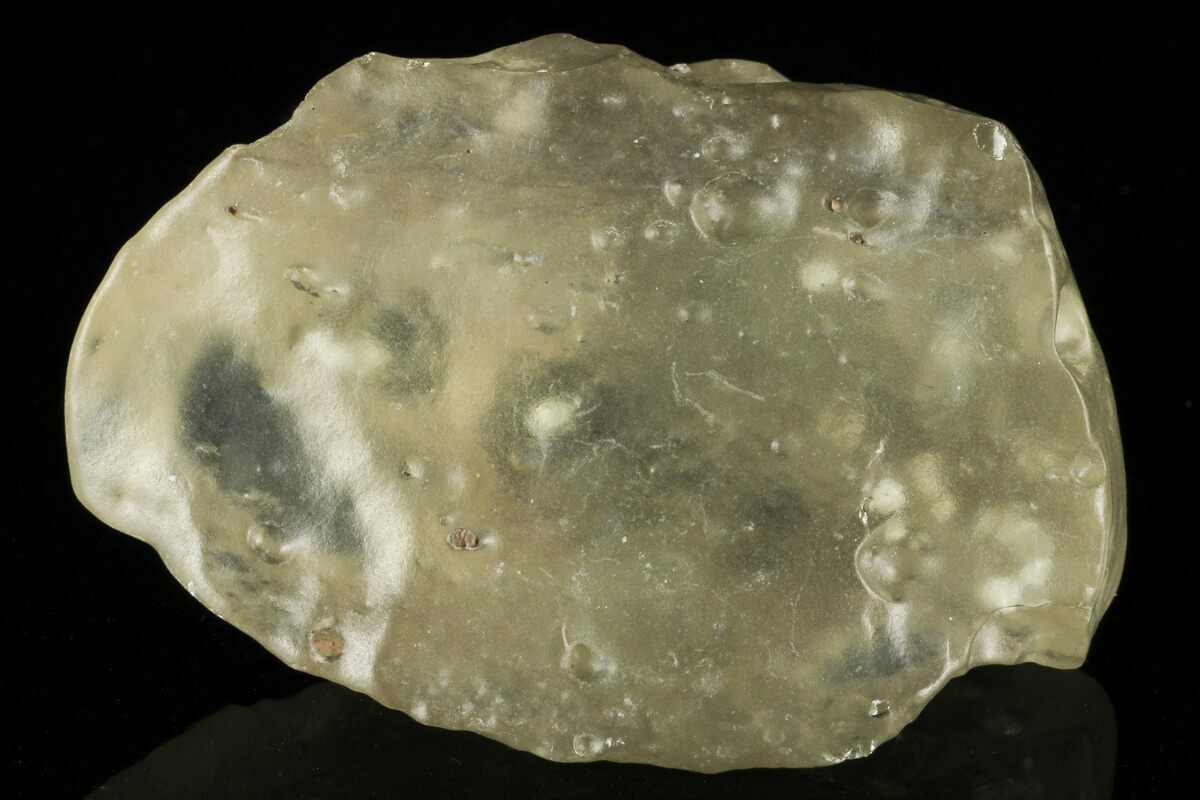 Libyan Desert glass is a type of impactite/tektite formed from the heat and pressure of a meteorite impact. The primary component of this glass is lechatelierite, a molten silica glass similar to quartz but lacking a crystal structure. This desert glass can also be different shades of green, tan, and brown depending on the inclusions present when the glass formed.