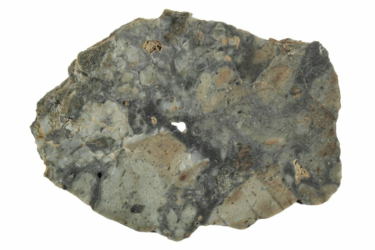 This is a 1.60" wide (3.48 gram), thin-cut slice of the recently discovered lunar meteorite, NWA 18055. Both sides have been cut flat and left with a matte finish to show off the colorful clasts.