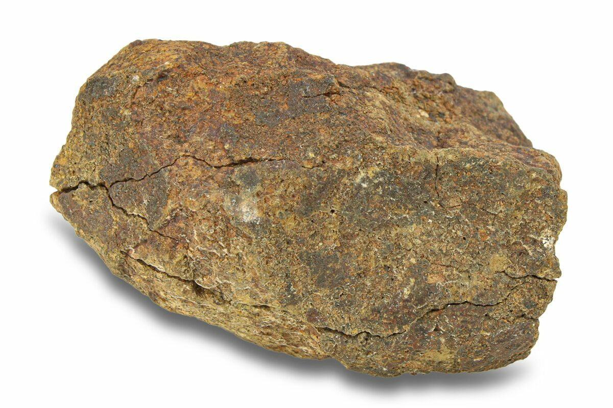 This is a 1.62" wide (47.8 gram) fragment of the chondrite meteorite known as Gold Basin. Its surface is quite weathered and coated in patina.
