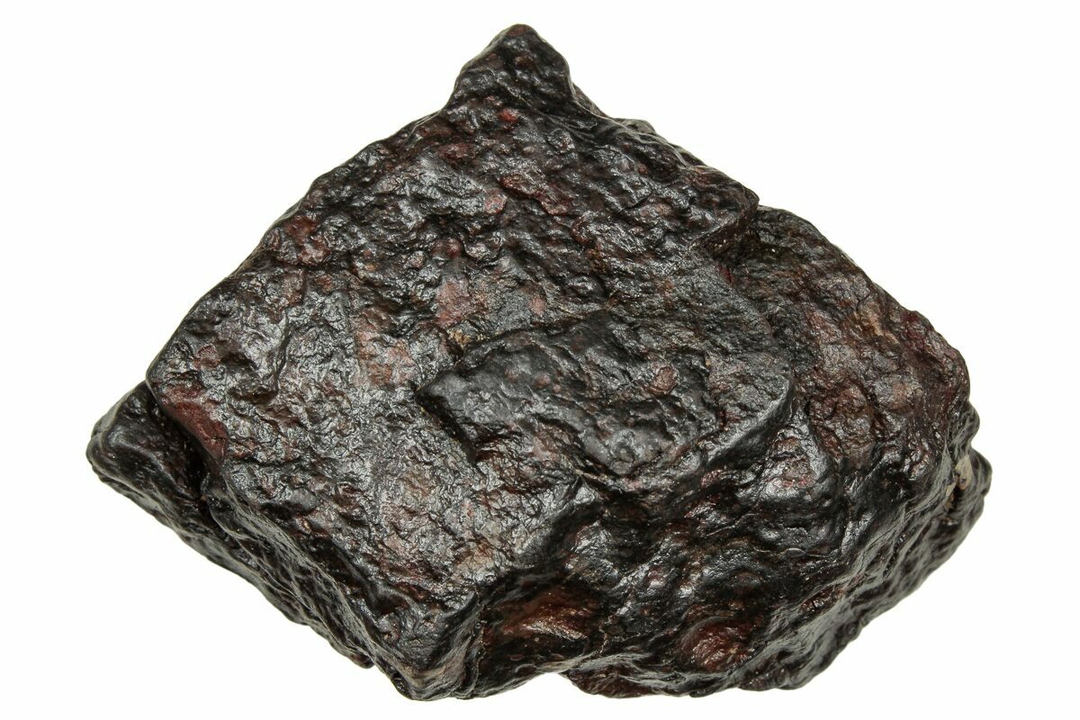 This chondrite contains some really interesting features. It is defined by its shiny black exterior, and darker brown interior punctuated by orange chondrules. A stunning addition to anyone's meteorite collection!