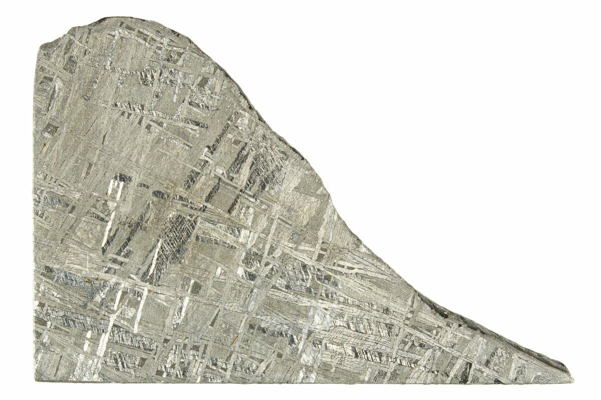 Most iron meteorites have distinctive, geometric patterns called Widmanstätten patterns, which become visible when the meteorite is cut and acid etched. These patterns are criss-crossing bands of the iron-nickel alloys kamacite and taenite that slowly crystalized as the core of the meteorites' parent bodies slowly cooled. Such large alloy crystallizations for mover millions of years and do not occur naturally on Earth, further proving that iron meteorites come from extraterrestrial bodies.