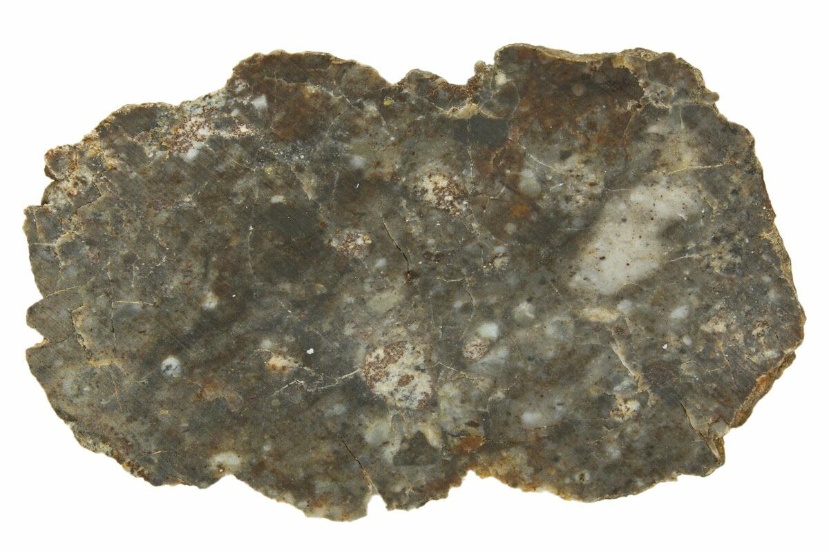This is a 2.11" wide (7.64 gram) thin slice of the lunar meteorite, NWA 11182.