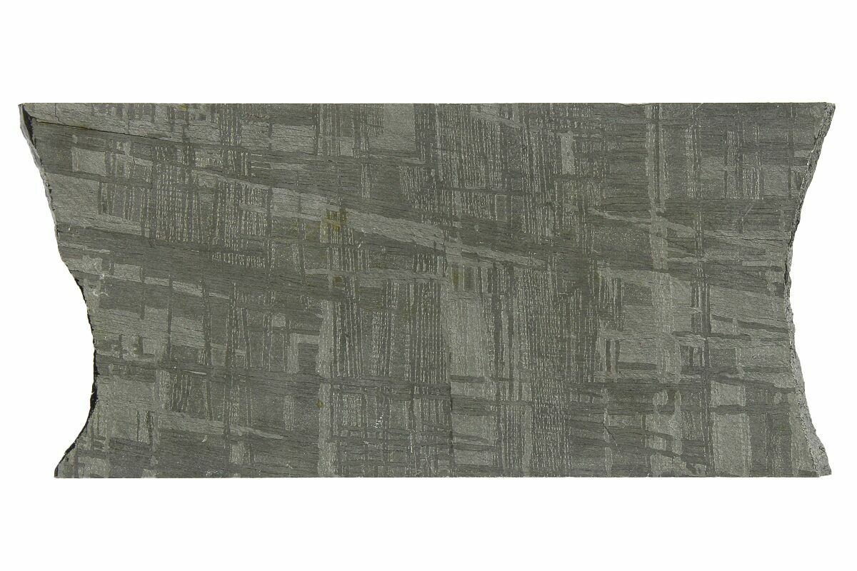 Most iron meteorites have distinctive, geometric patterns called Widmanstätten patterns, which become visible when the meteorite is cut and acid etched. These patterns are criss-crossing bands of the iron-nickel alloys kamacite and taenite that slowly crystalized as the core of the meteorites' parent bodies slowly cooled. Such large alloy crystallizations for mover millions of years and do not occur naturally on Earth, further proving that iron meteorites come from extraterrestrial bodies.