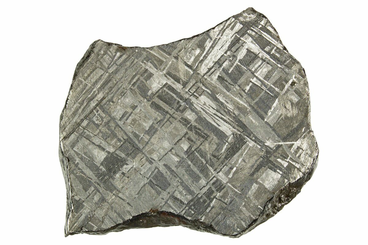 Most iron meteorites have distinctive, geometric patterns called Widmanstätten patterns, which become visible when the meteorite is cut and acid etched. These patterns are criss-crossing bands of the iron-nickel alloys kamacite and taenite that slowly crystalized as the core of the meteorites' parent bodies slowly cooled. Such large alloy crystallizations for mover millions of years and do not occur naturally on Earth, further proving that iron meteorites come from extraterrestrial bodies.