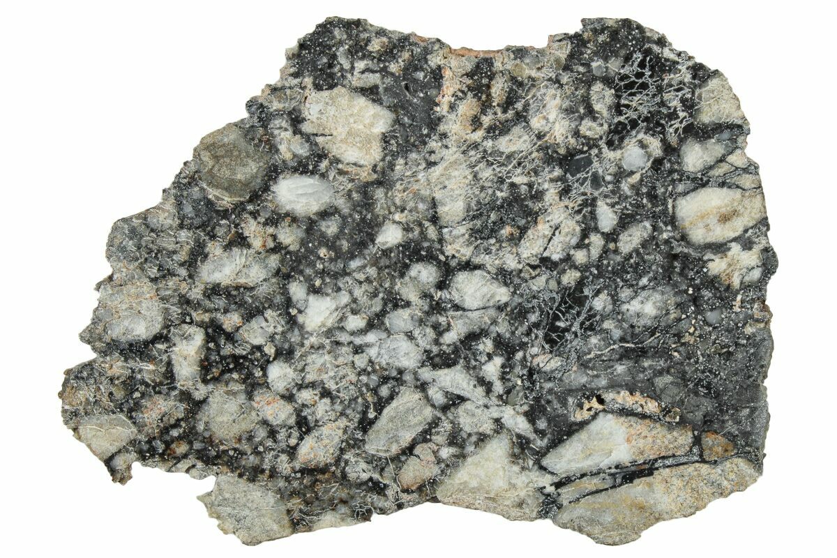 This is an incredible, 2.33" wide (7.66 gram), thin slice of the Lunar meteorite Ajdabiya 001, found in 2021. The meteorite has been polished to a glossy finish on one side to highlight the alluring clasts.