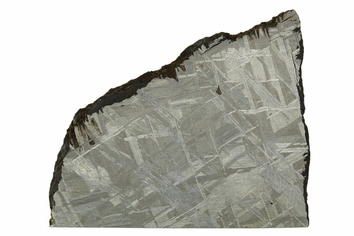 Most iron meteorites have distinctive, geometric patterns called Widmanstätten patterns, which become visible when the meteorite is cut and acid etched. These patterns are criss-crossing bands of the iron-nickel alloys kamacite and taenite that slowly crystalized as the core of the meteorites' parent bodies slowly cooled. Such large alloy crystallizations for mover millions of years and do not occur naturally on Earth, further proving that iron meteorites come from extraterrestrial bodies.