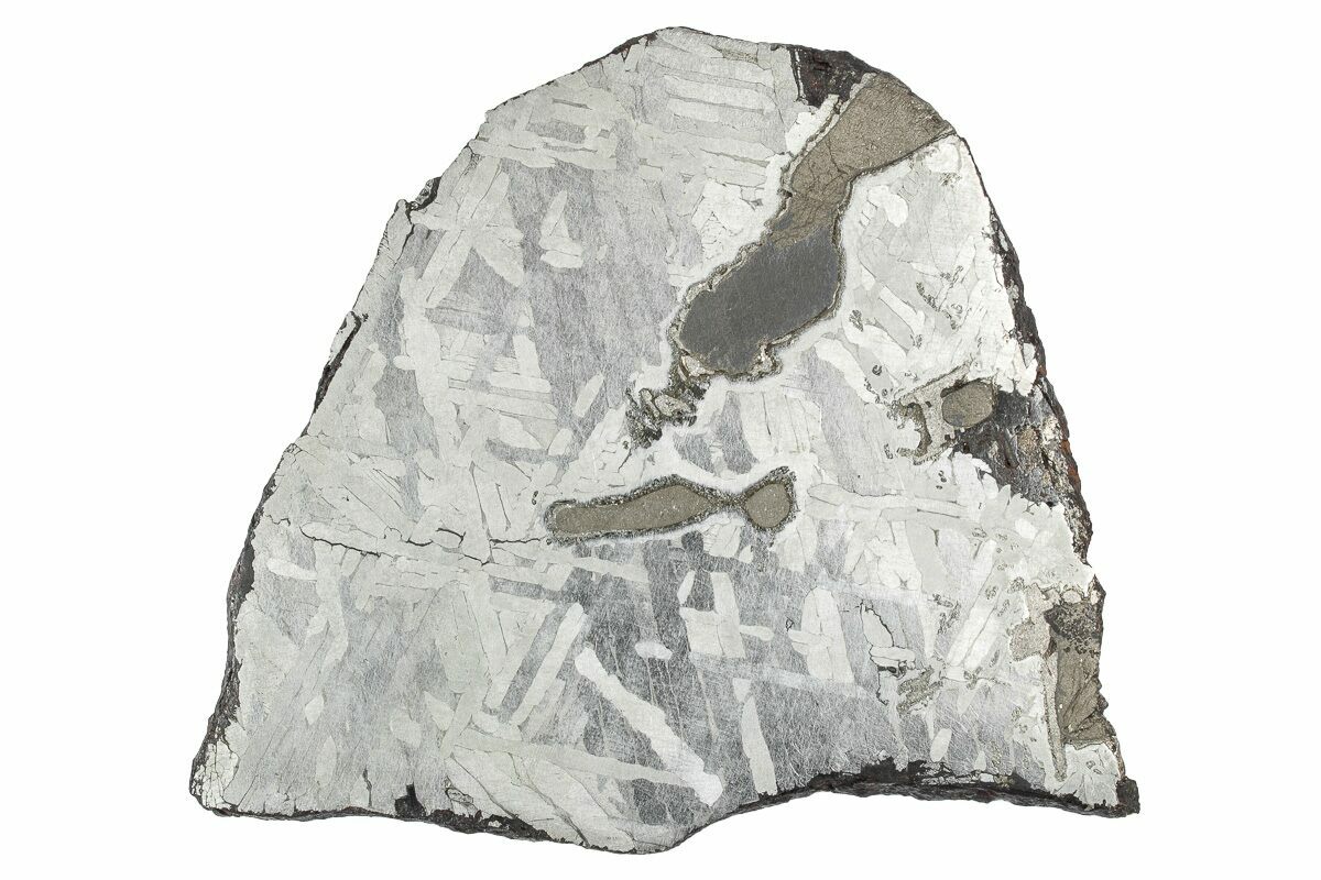 Most iron meteorites have distinctive, geometric patterns called Widmanstätten patterns, which become visible when the meteorite is cut and acid etched. These patterns are criss-crossing bands of the iron-nickel alloys kamacite and taenite that slowly crystalized as the core of the meteorites' parent bodies slowly cooled. Such large alloy crystallizations for mover millions of years and do not occur naturally on Earth, further proving that iron meteorites come from extraterrestrial bodies.