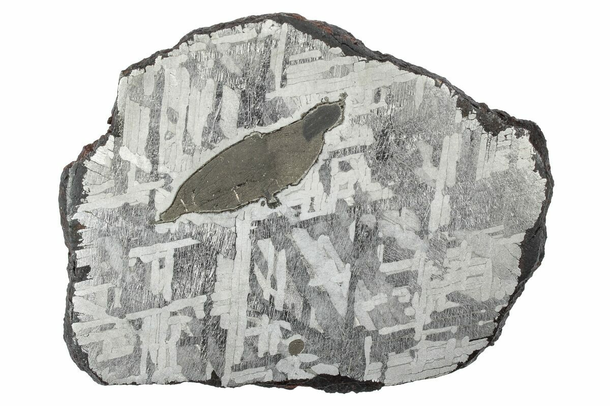 Most iron meteorites have distinctive, geometric patterns called Widmanstätten patterns, which become visible when the meteorite is cut and acid etched. These patterns are criss-crossing bands of the iron-nickel alloys kamacite and taenite that slowly crystalized as the core of the meteorites' parent bodies slowly cooled. Such large alloy crystallizations for mover millions of years and do not occur naturally on Earth, further proving that iron meteorites come from extraterrestrial bodies.