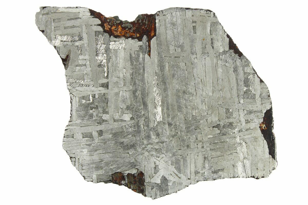 Most iron meteorites have distinctive, geometric patterns called Widmanstätten patterns, which become visible when the meteorite is cut and acid etched. These patterns are criss-crossing bands of the iron-nickel alloys kamacite and taenite that slowly crystalized as the core of the meteorites' parent bodies slowly cooled. Such large alloy crystallizations for mover millions of years and do not occur naturally on Earth, further proving that iron meteorites come from extraterrestrial bodies.