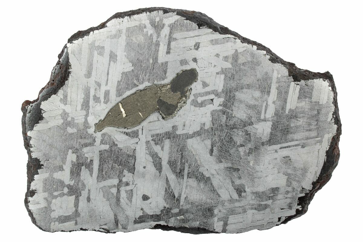 This is a gorgeous, 3.30" wide (83.83 gram) etched slice of the Toluca iron meteorite from Mexico. It shows very nice Widmanstätten patterns on the cut and polished face.