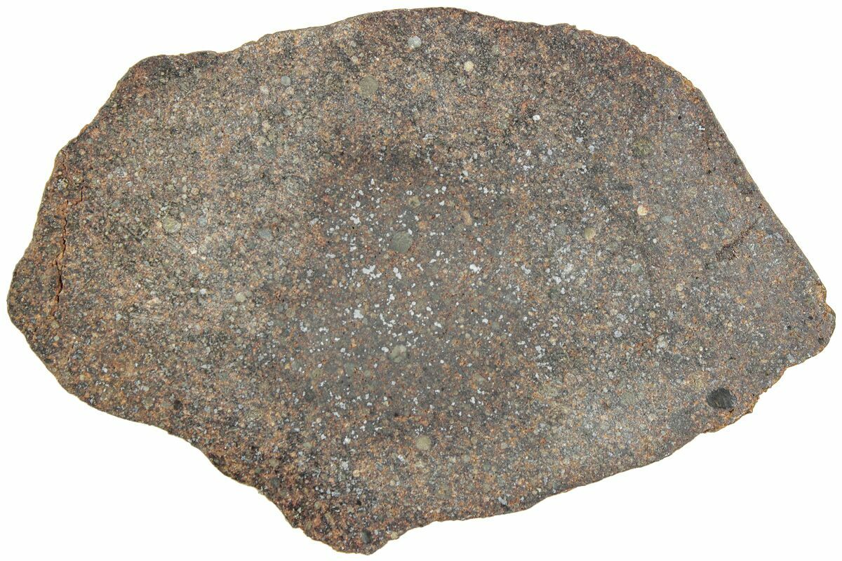 This is a 3" wide (77 gram), polished stony (chondrite) meteorite slice from a large strewn field in the western Sahara Desert of Morocco. We believe this would probably be classified as a L3 chondrite based on most of the material found in the area, though this can't be definitively determined without in-depth analysis. L type ordinary chondrites are the most common and therefore most affordable meteorites allowing you to own a chunk of "space rock" at a reasonable price.