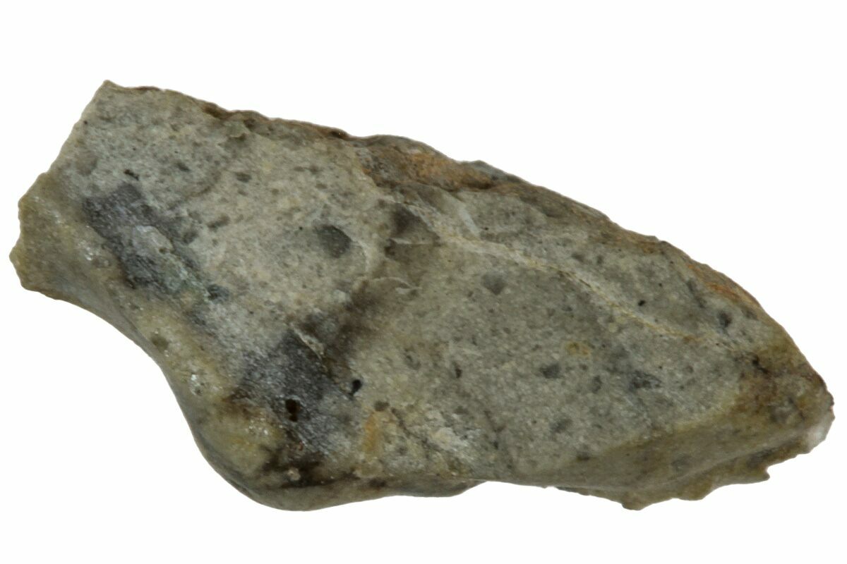 This is a .43" wide (0.25 gram) fragment of the lunar meteorite, NWA 10401. One face has been cut and polished to a smooth finish and it comes in a small acrylic case.