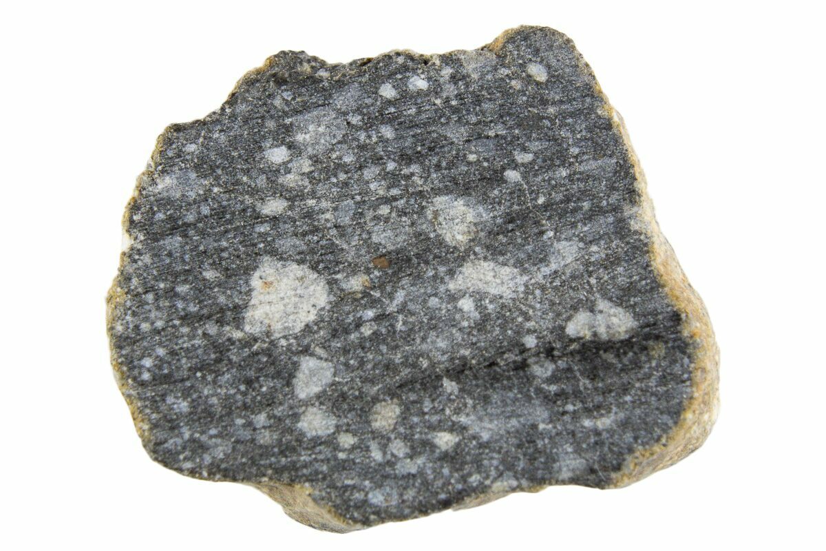 This is a .44" wide (.48 gram) end cut of the lunar meteorite, NWA 11228. One face has been cut and polished to a smooth finish and it comes with a small acrylic case.