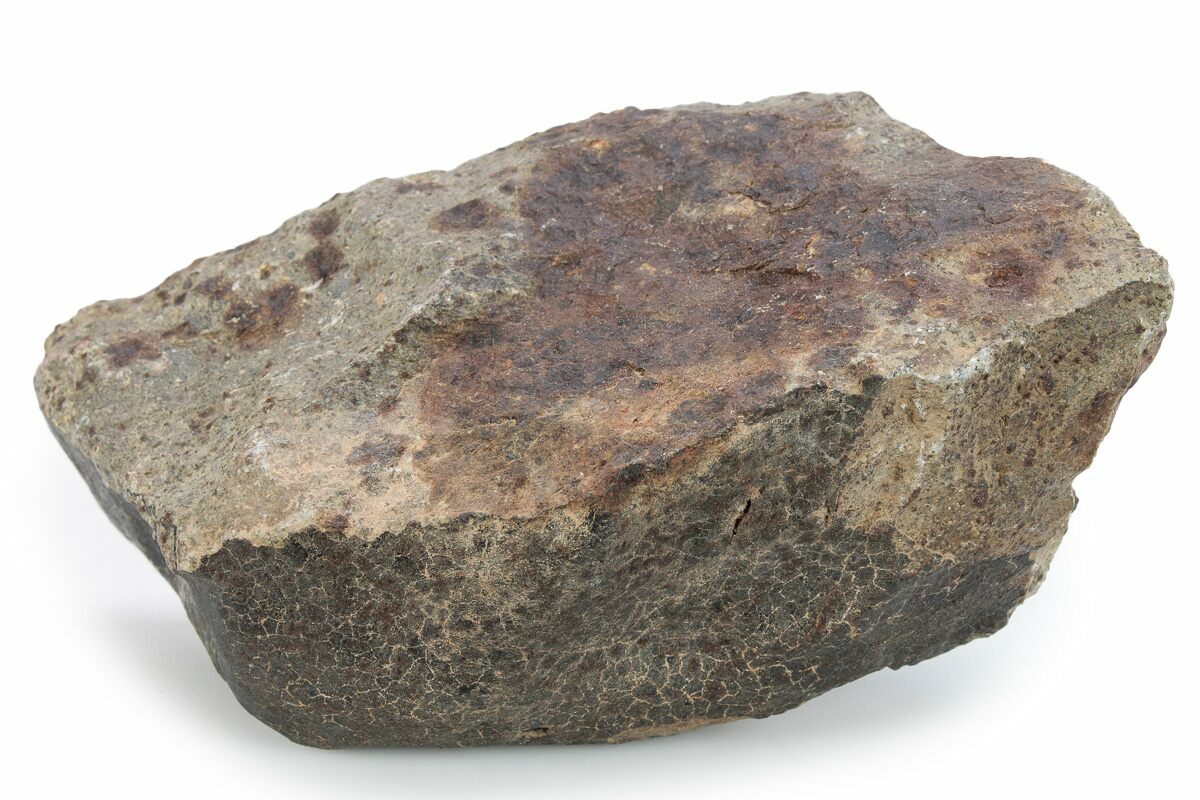 This is a 5.7" wide (1148.8 gram) stony (chondrite) meteorite from a large strewn field in the western Sahara Desert of Morocco. This specimen is slightly magnetic, and is likely classified as a L3 chondrite based on most of the material found in the area, though this cannot be definitively determined without cutting it. L-type ordinary chondrites are the most common meteorites and therefore the most affordable: you can claim your own chunk of "space rock" at a reasonable price.
