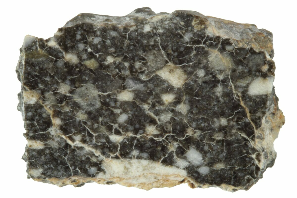 Meteorite NWA 11273 is a lunar feldspathic breccia meteorite. It is mainly composed of olivine and pigeonite, with substantial amounts of pyroxene, kamacite, and troilite, all minerals deposited by meteorites impacting the Moon. The resulting clasts are highly contrasted throughout the meteorite, and often contain microscopic specks of meteoritic iron. It has a low shock stage and a low weathering grade.