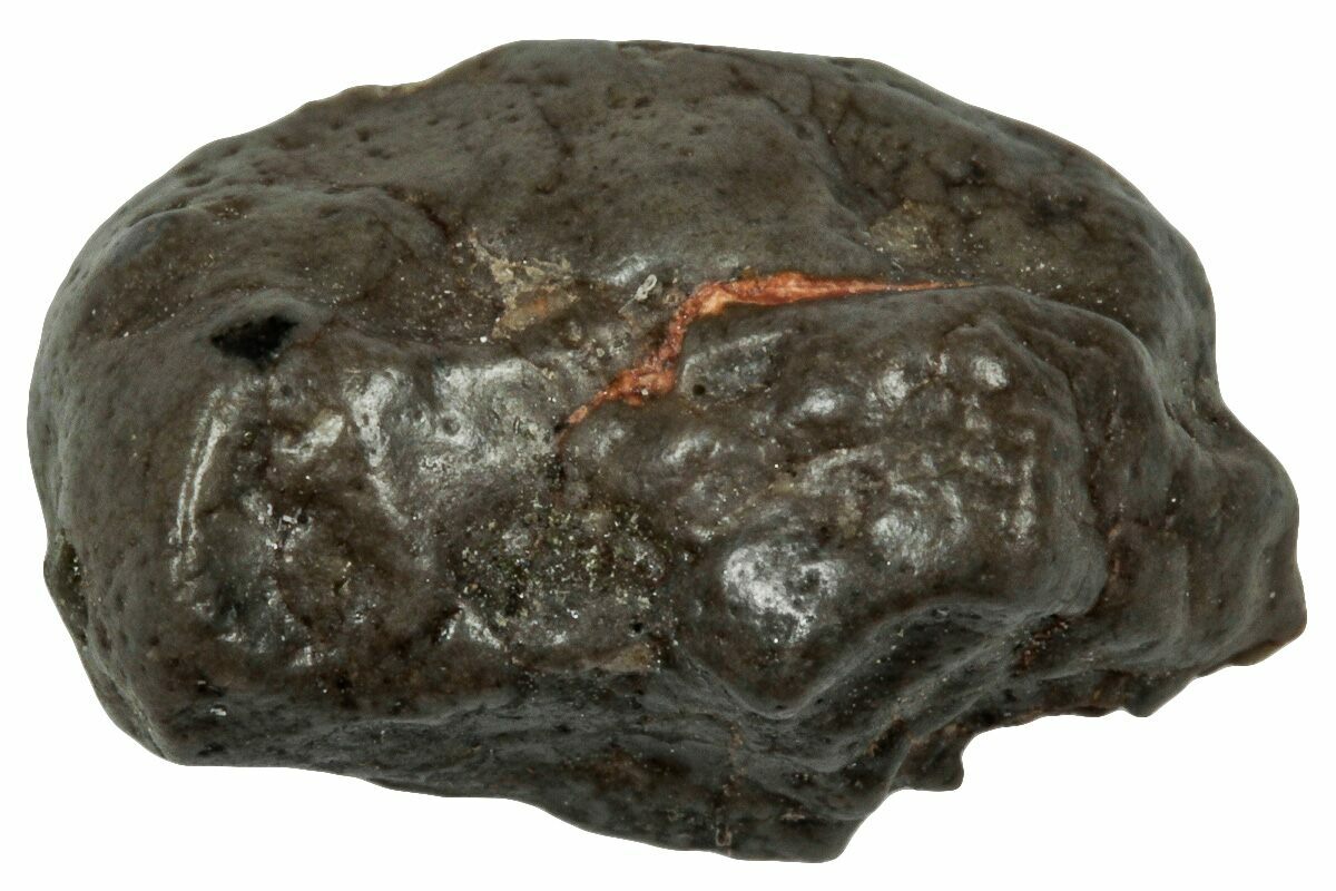 This is a .6" wide (1.24 gram) section of the lunar meteorite Touat 008, collected near Adrar, Algeria. One side has been cut flat to allow for the lithic clasts to be seen, while the other side has been left in its natural state.