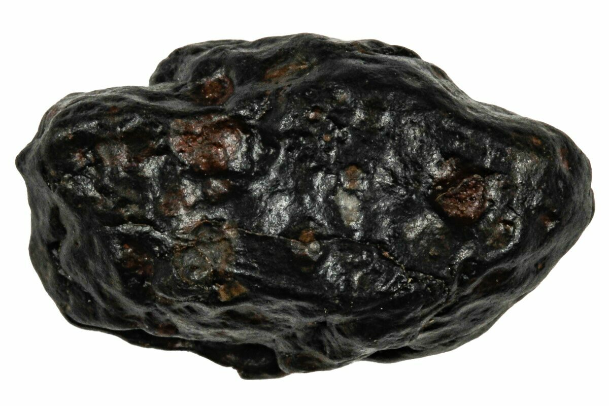 This chondrite contains some really interesting features. It is defined by its shiny black exterior, and darker brown interior punctuated by orange chondrules. A stunning addition to anyone's meteorite collection!