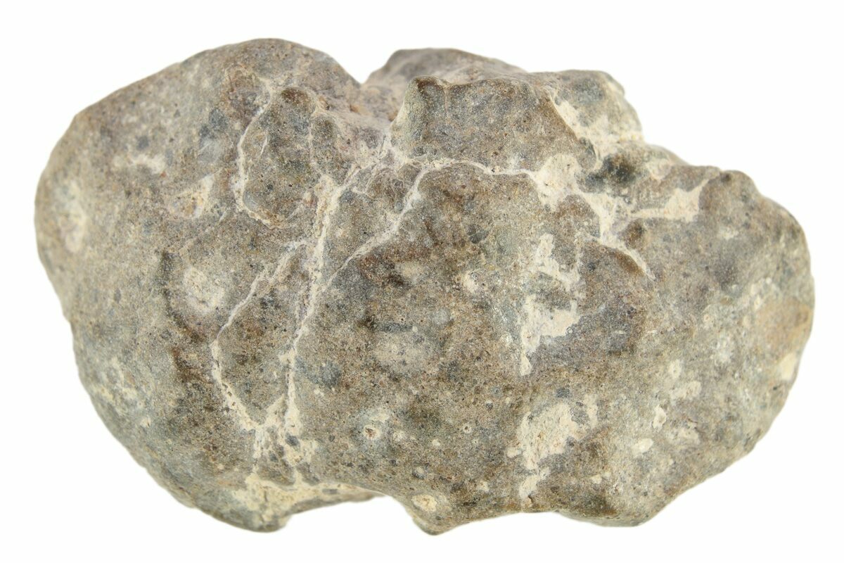 This is a .8" wide (4.06 gram) fragment of the lunar meteorite NWA 13974. Pieces found on the desert's surface have a brownish patina, while fragments found just below the surface are whiter.