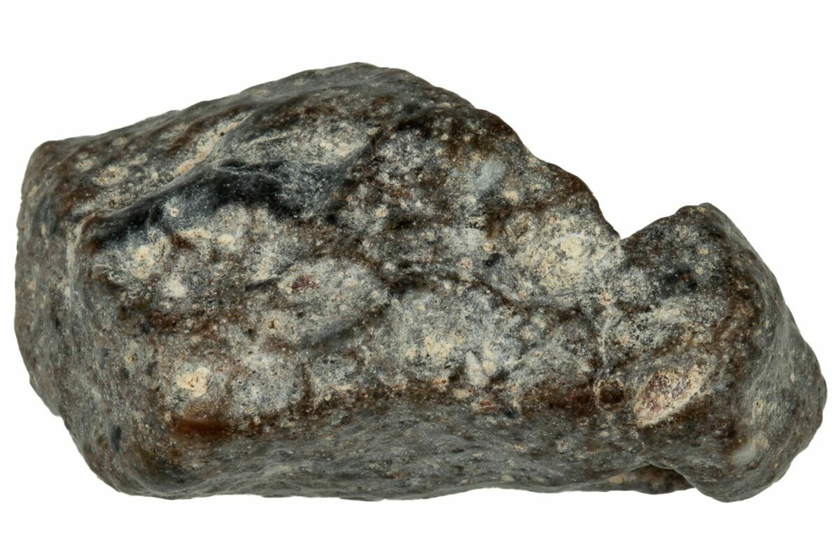 This is a .81" wide (3.6 gram) fragment of the lunar meteorite NWA 13974. Pieces found on the desert's surface have a brownish patina, while fragments found just below the surface are whiter.
