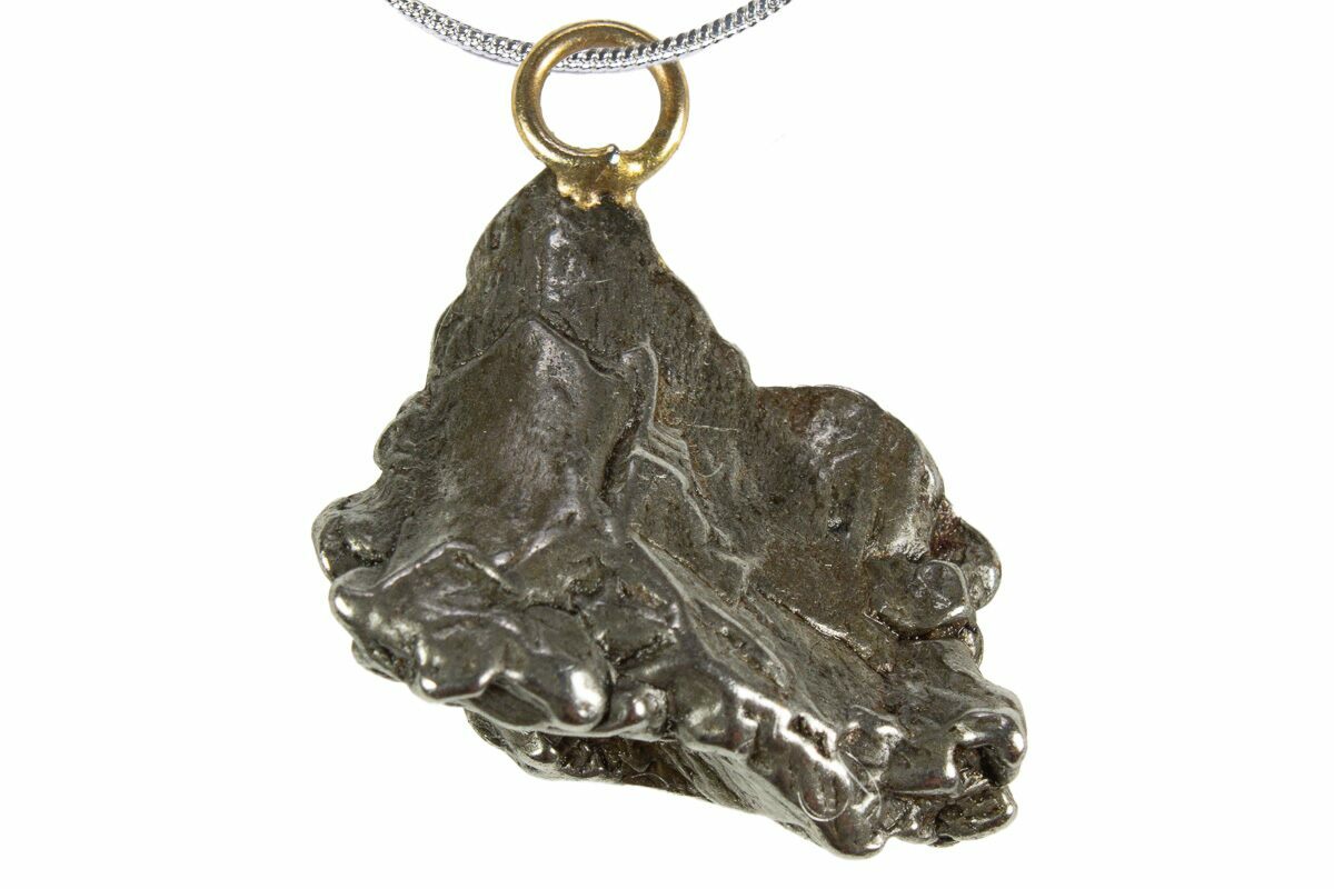 This is an authentic, .85" long piece of an iron meteorite from the Campo del Cielo fall in Argentina. A metal loop has been attached to the meteorite so your favorite space rock can be displayed around your neck.