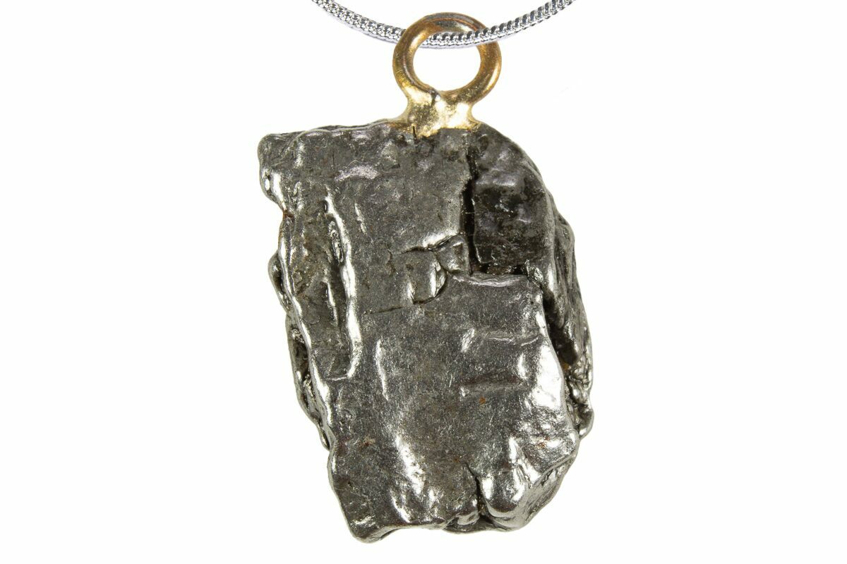 This is an authentic, .85" long piece of an iron meteorite from the Campo del Cielo fall in Argentina. A metal loop has been attached to the meteorite so your favorite space rock can be displayed around your neck.
