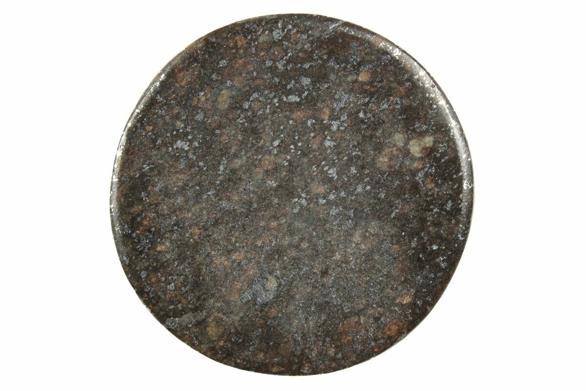 This is a .9" wide (9.2 gram), stony (chondrite) meteorite cabochon from a large strewn field in the western Sahara Desert of Morocco. We believe this would probably be classified as a L3 chondrite based on most of the material found in the area, though this can't be definitively determined without in-depth analysis.