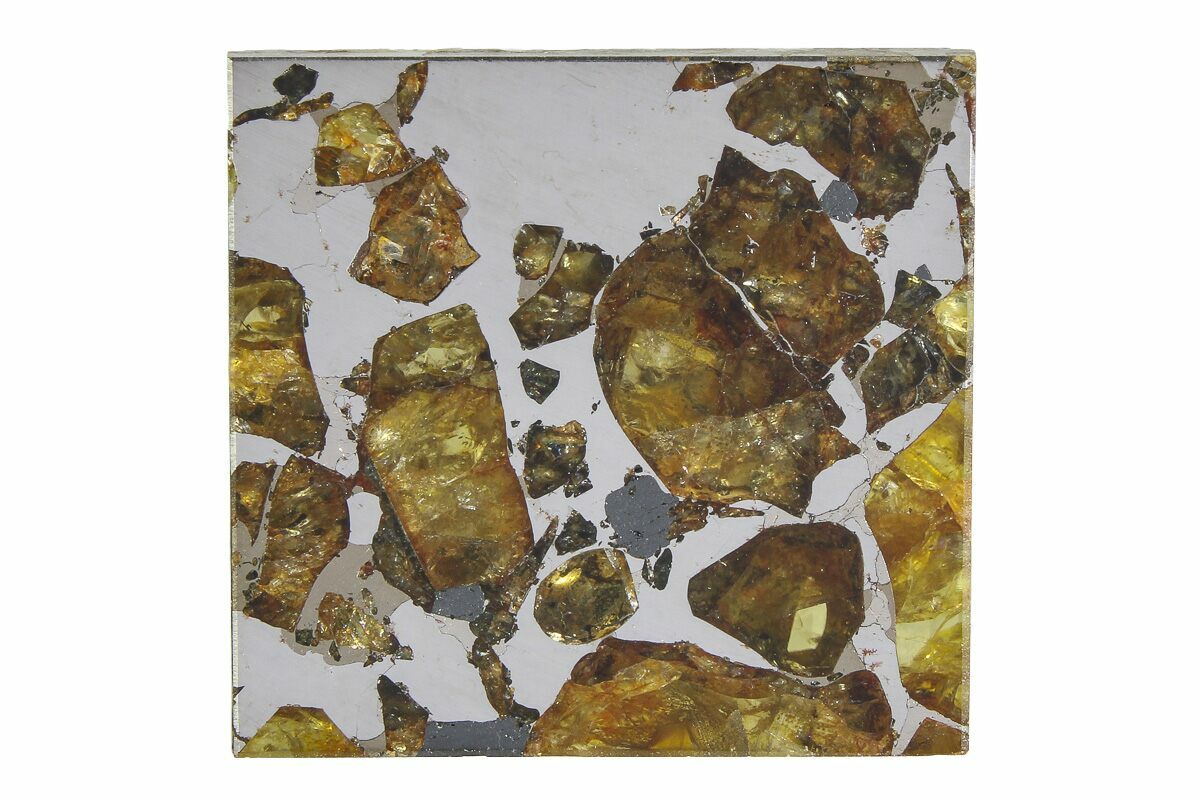 This stunning main group pallasite was first discovered near a village in the southeastern district of Brahin in Byelorussia (now Belarus) in 1807. Pieces were found over a 15-kilometer strewn field crossing the Dnieper River. At the time, it was only the second meteorite ever found on Soviet soil.