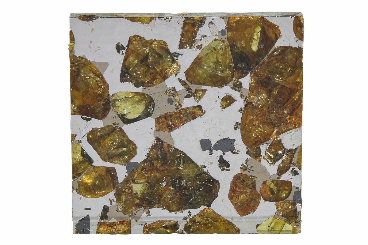 This stunning main group pallasite was first discovered near a village in the southeastern district of Brahin in Byelorussia (now Belarus) in 1807. Pieces were found over a 15-kilometer strewn field crossing the Dnieper River. At the time, it was only the second meteorite ever found on Soviet soil.