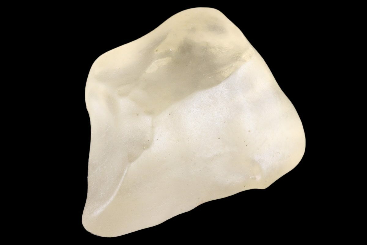 Libyan Desert glass is a type of impactite/tektite formed from the heat and pressure of a meteorite impact. The primary component of this glass is lechatelierite, a molten silica glass similar to quartz but lacking a crystal structure. This desert glass can also be different shades of green, tan, and brown depending on the inclusions present when the glass formed.