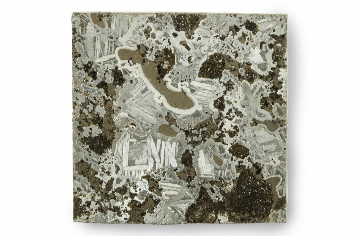 In May 25, 1992, a Russian agronomist found a single 26-kilogram mass in a wheat field near Maslyanino village in south-central Russia. 1.4 kilograms went to the Russian Academy of Sciences for research work: the main mass is reported to be in a museum in Novosibirsk. Slices of this meteorite show a high percentage of silicate and troilite clasts. Etching reveals an interesting broken-fin octahedrite texture in the metal between these clasts. Very little of this material is available on the market due to the small amount recovered.