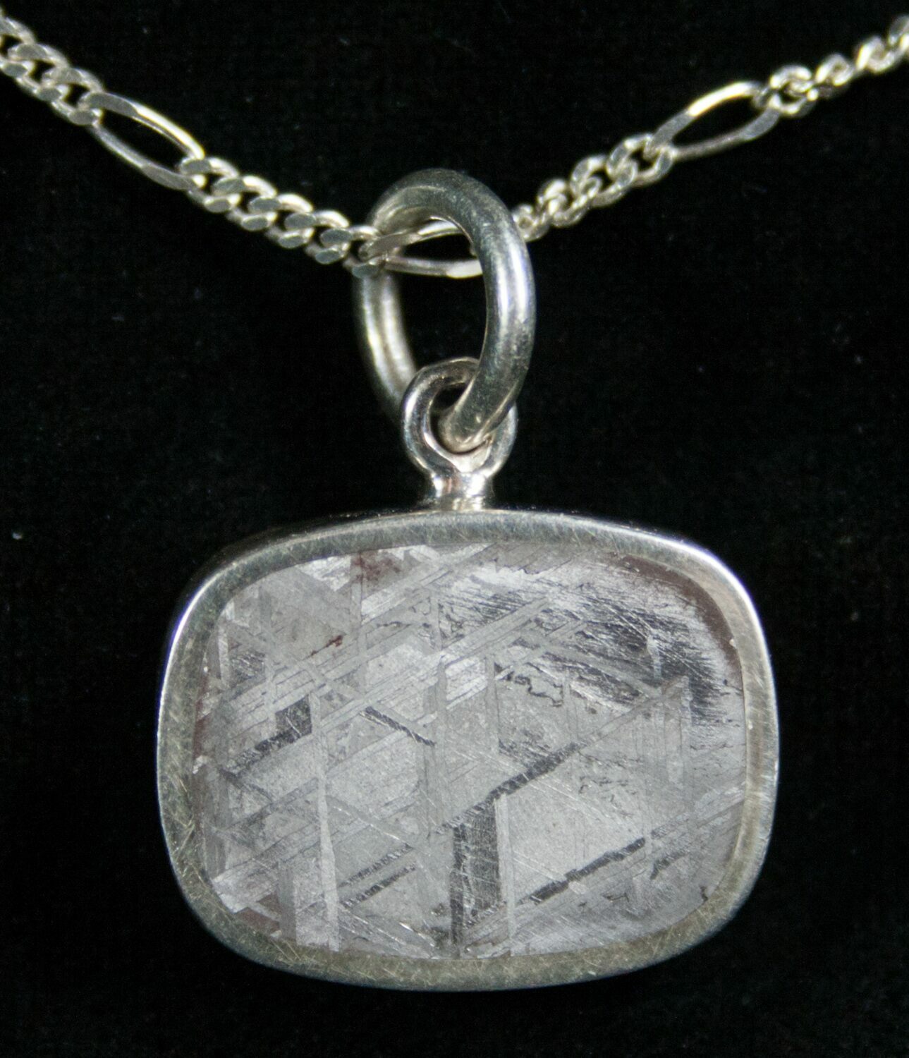 Gibeon is an iron-nickel meteorite that fell in prehistoric times in Namibia. It was named after the nearest town Gibeon, Namibia. The fragments of the meteorite in the strewn field are dispersed over an elliptical area 171 miles long and 62 miles wide. It have been used for centuries by the Nama people to craft tools and weapons. The crystal structure of this meteorite provides a classic example of fine octahedrite and the Widmanstatten pattern is appreciated for its beauty both by collectors and designers of jewelry.