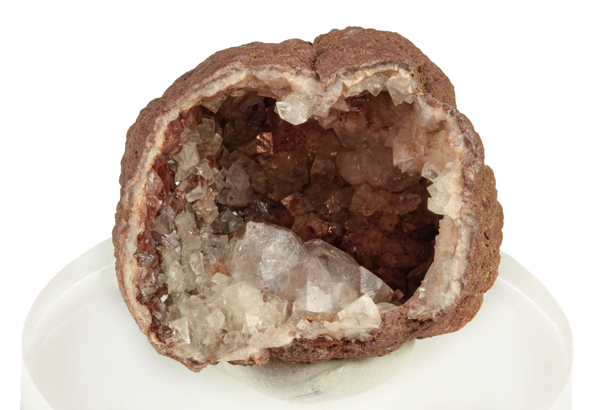 This is a beautiful find out of Argentina, featuring true pink amethyst crystals, collected from the Choique Mine. It occurs in geodic formations or cavities lined with crystals. This gemmy geode section is 1.0" wide and also contains a multitude of analcime crystals.