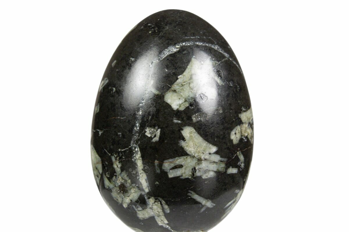 This is a beautiful piece of Chinese writing rock from The Philippines that has been polished into an egg shape. This specimen measures 1.0 inches tall and its glossy polish allows the feldspar crystal formations to really stand out.