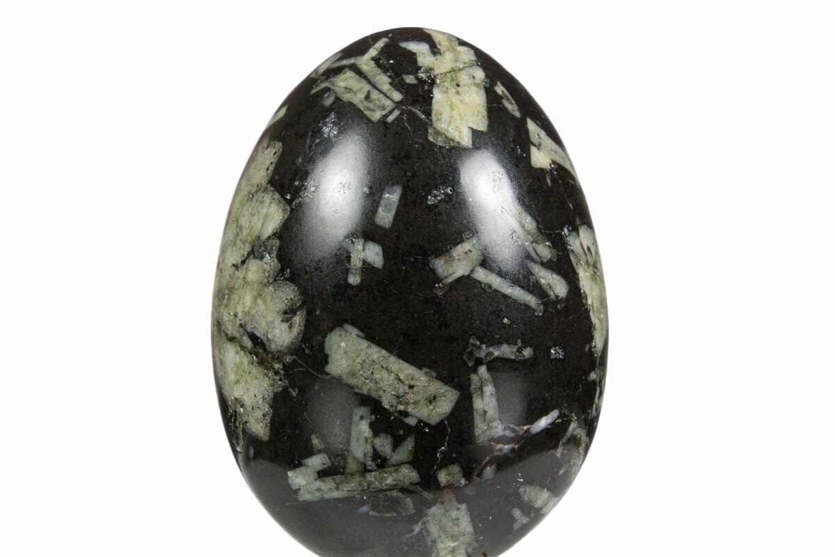 This is a beautiful piece of Chinese writing rock from The Philippines that has been polished into an egg shape. This specimen measures 1.0 inches tall and its glossy polish allows the feldspar crystal formations to really stand out.