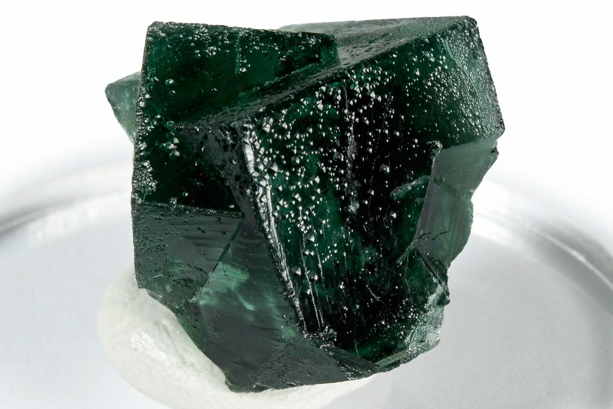 This is a gorgeous, 1.05" wide cubic fluorite twin cluster from the "Greedy Hog Pocket" (intersection of River Catcher Vein and Greenbank Vein) at the Diana Maria Mine in England. This particular kind of fluorite is unique in that it will actually fluoresce a beautiful purple-blue color in just natural light alone! Under short and long wave UV, these crystals fluoresce a vibrant purple color.