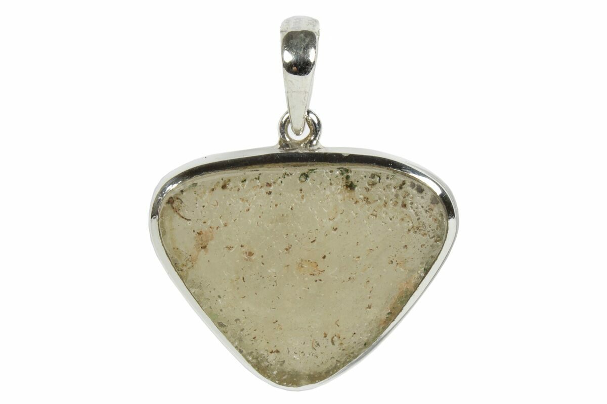 This is a 5.6 gram piece of Libyan Desert Glass, a type of meteorite impactite found along the Egyptian and Libyan borders. The impactite cabochon was inlaid in a silver pendant setting that allows you to take your favorite impactite on the go. It measures 1.05 x 1".