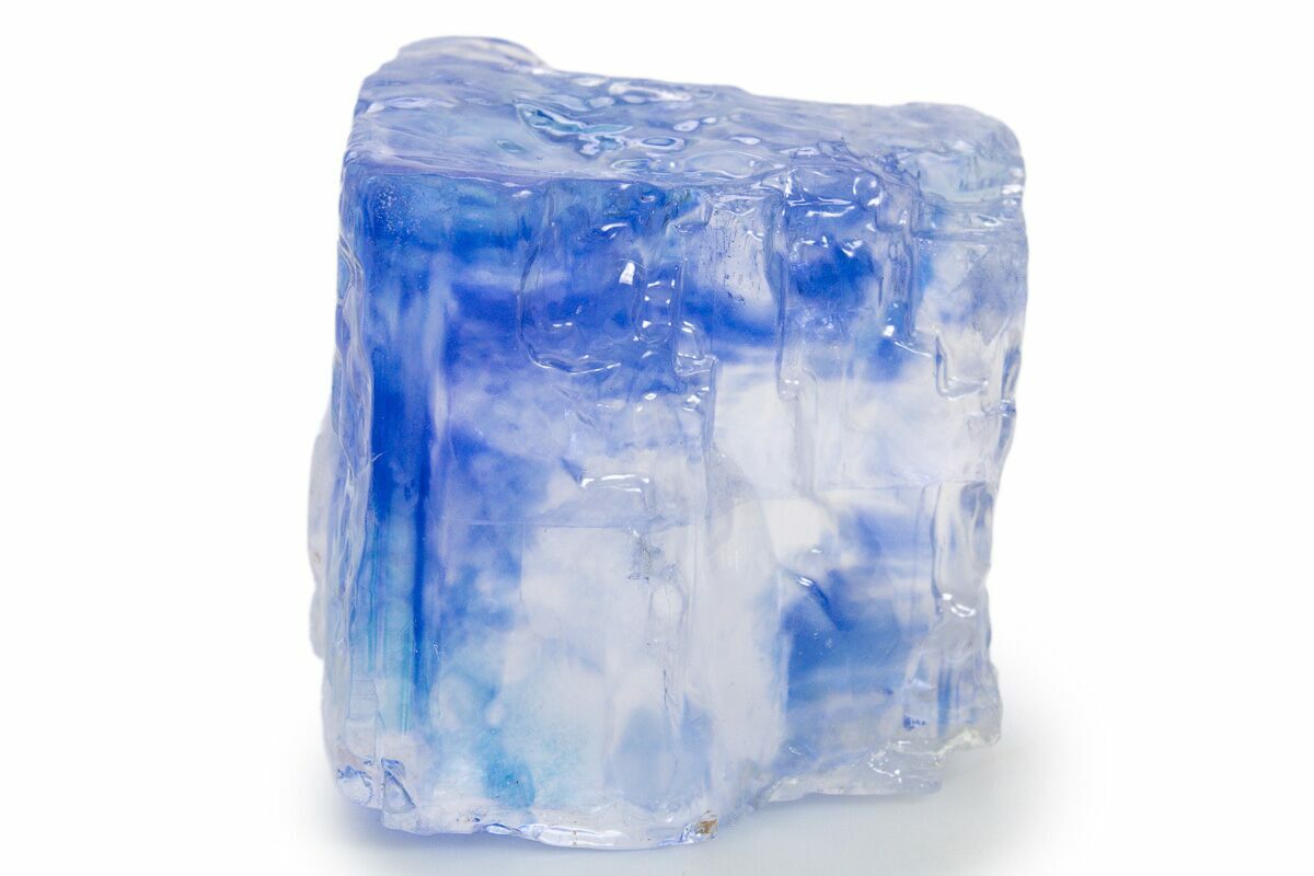 Halite, more commonly known as rock salt, is a form of the mineral sodium chloride (NaCl). It forms when salt-rich waters evaporate and can be colored by mineral impurities. Blue halite is relatively rare and highly sought after by mineral collectors due to its vivid coloration and water-soluble fragility.