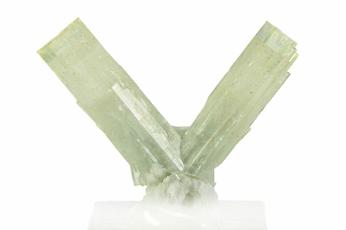 Goshenite is the rare, colorless variety of beryl, the same mineral family that includes emerald and aquamarine. Its clear appearance comes from the absence of trace elements that create other beryl colors. Goshenite forms in hexagonal crystals, often as sharp, six-sided prisms with a bright glassy luster. Found in granitic pegmatites, notable sources include Brazil, Pakistan, Madagascar, and the United States. With a hardness of 7.5–8 on the Mohs scale, it is durable and sometimes faceted as a gemstone. Collectors value goshenite for its purity, clarity, and elegant natural crystal form.