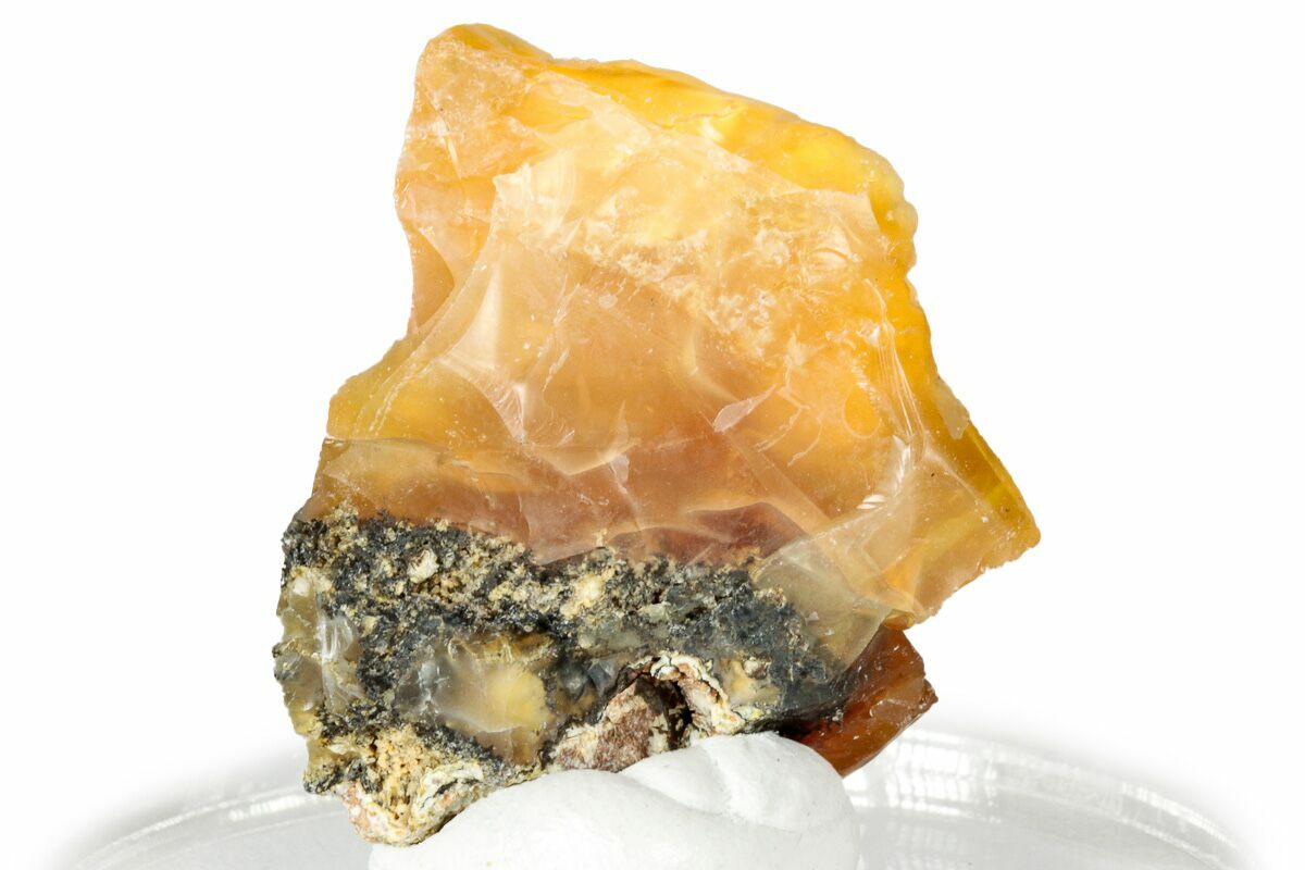 This is a beautiful 1.1" section of fire opal, collected in the remote mountains of Eastern Oregon. It is known for its vivid orange and yellow hues, obtaining its fiery colors from trace amounts of iron. Unlike many opals, it can be transparent, glowing brightly when lit from behind.