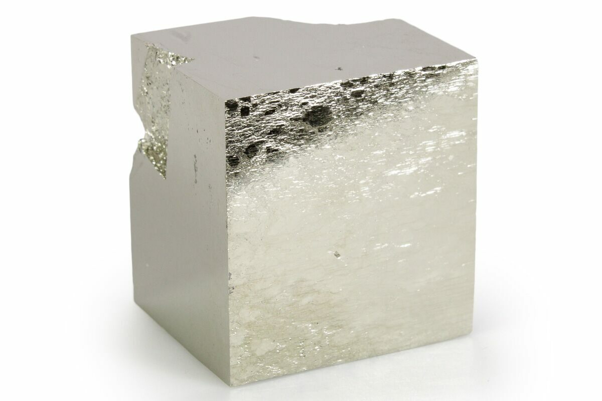 At first glance some people assume that these pyrite cubes are man-made, but the amazing thing is that they are natural! Pyrite from this location is famous for its beautiful shine, near-perfect cubic formation, and sculptural appearance. Because the matrix rock is soft, the cubes often come loose during collection. Care is taken during preparation to stabilize, repair, and make sure everything is remounted in its natural position: no specimens are composites. This means that nearly all of the pyrite cubes still in the rock from this locality have been remounted, and most clusters of multiple cubes have been stabilized.