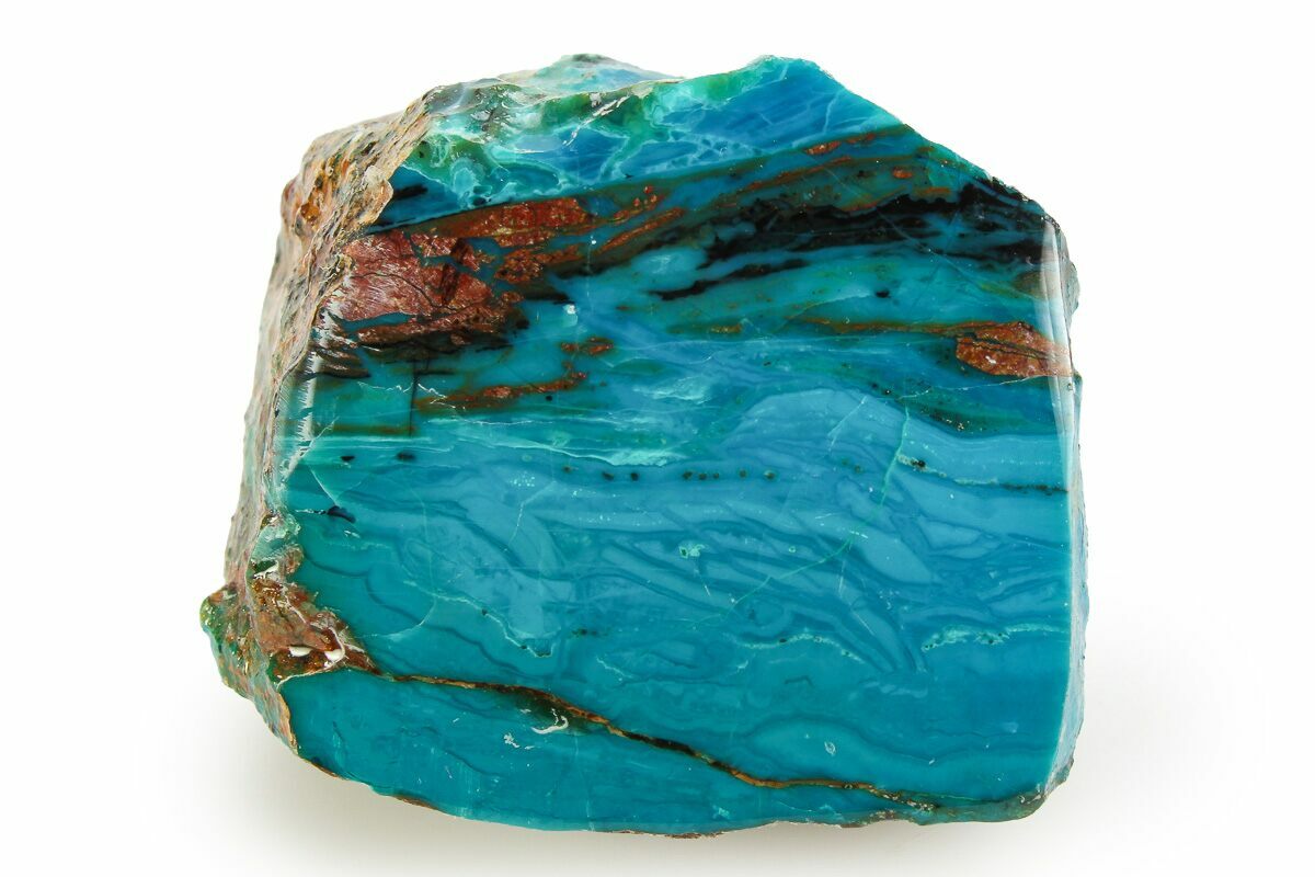 This is an incredibly vibrant, 1.1" wide section of "Chilean blue opal", also known as "Atacama blue opal", collected from the Atacama region of Chile. One side has been polished to a glossy finish on and sealed to highlight the incredibly vivid blue coloration of this natural stone.