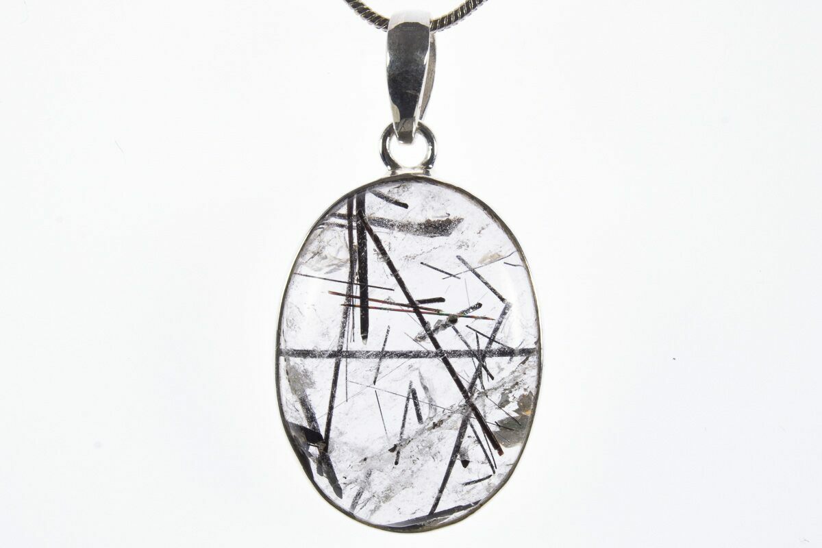 1.15" Glassy Tourmalinated Quartz Pendant - 925 Sterling Silver