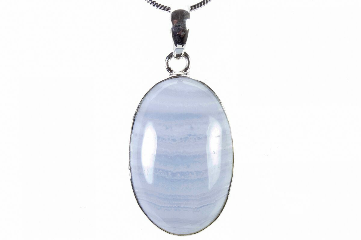 1.2" Blue Lace Agate Pendant (Necklace) - 925 Sterling Silver
