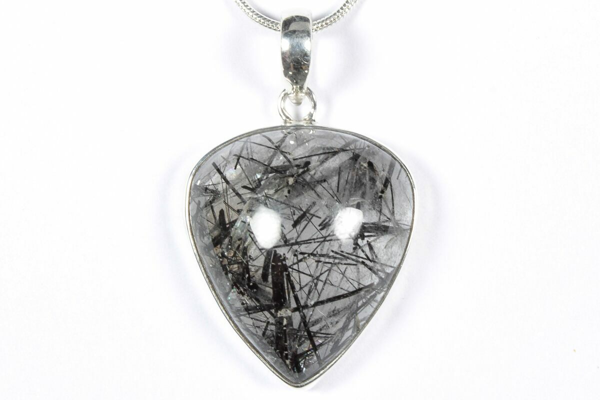 1.2" Glassy Tourmalinated Quartz Pendant - 925 Sterling Silver