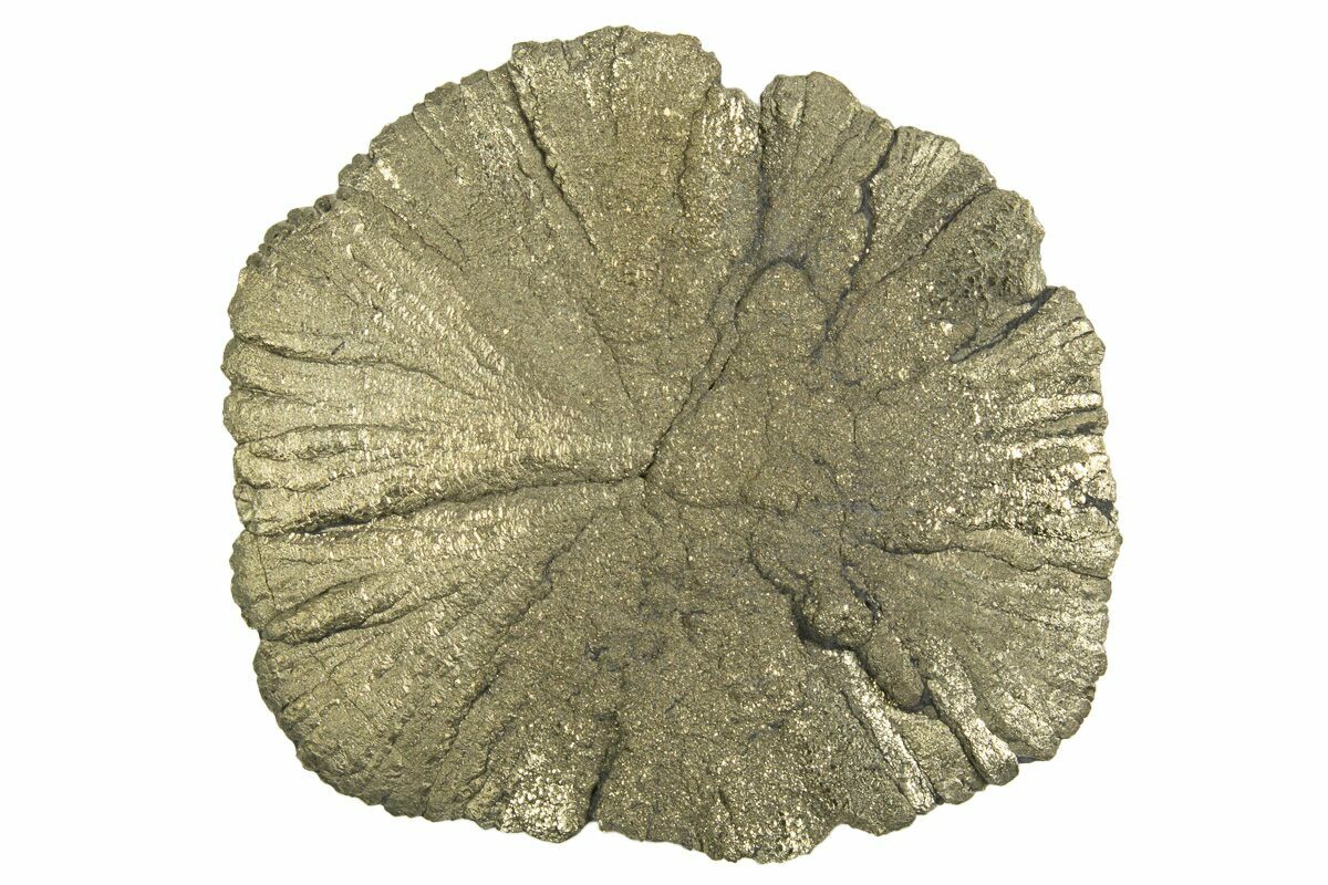 Pyrite suns or pyrite dollars are an unusual pyrite formation: striations radiate out from the center like rays of the sun. They are found in narrow, compacted seams of slate interbedded in the 300 million-year-old coal deposits near Sparta, Illinois. They are recovered as a byproduct of local coal mining operations, but are increasingly difficult to source as the coal mines in Illinois shut down one by one.