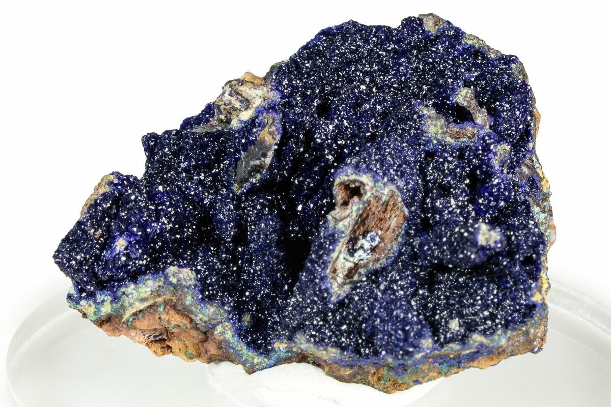 Azurite is a copper carbonate hydroxide mineral best known for its beautiful and vibrant blue appearance. Azurite typically forms in nodular formations with other colorful, copper-rich minerals. It is a secondary mineral that precipitated in pores, crevices, and caverns from water with high concentrations of carbon dioxide.