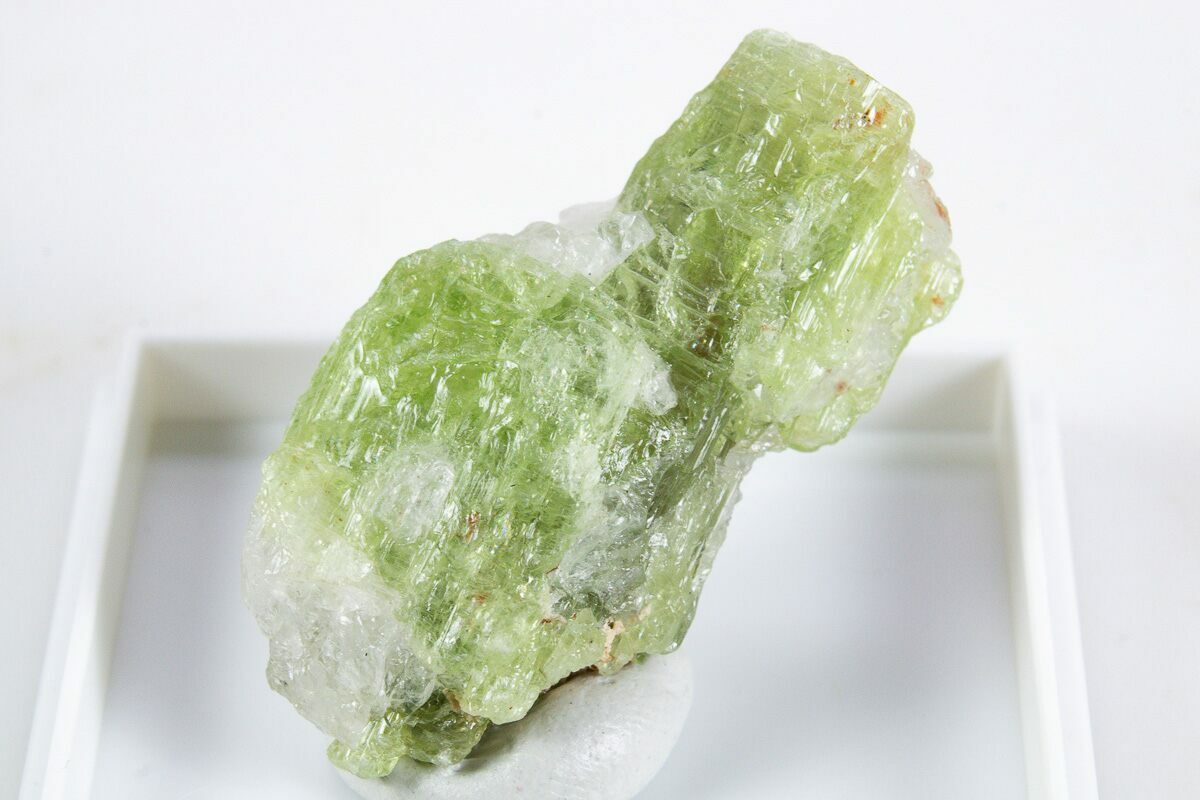 This is a 1.2" long, unusual green kyanite crystal that has been completely removed from the matrix it was found in, collected from Tanzania. Comes with an acrylic display case.