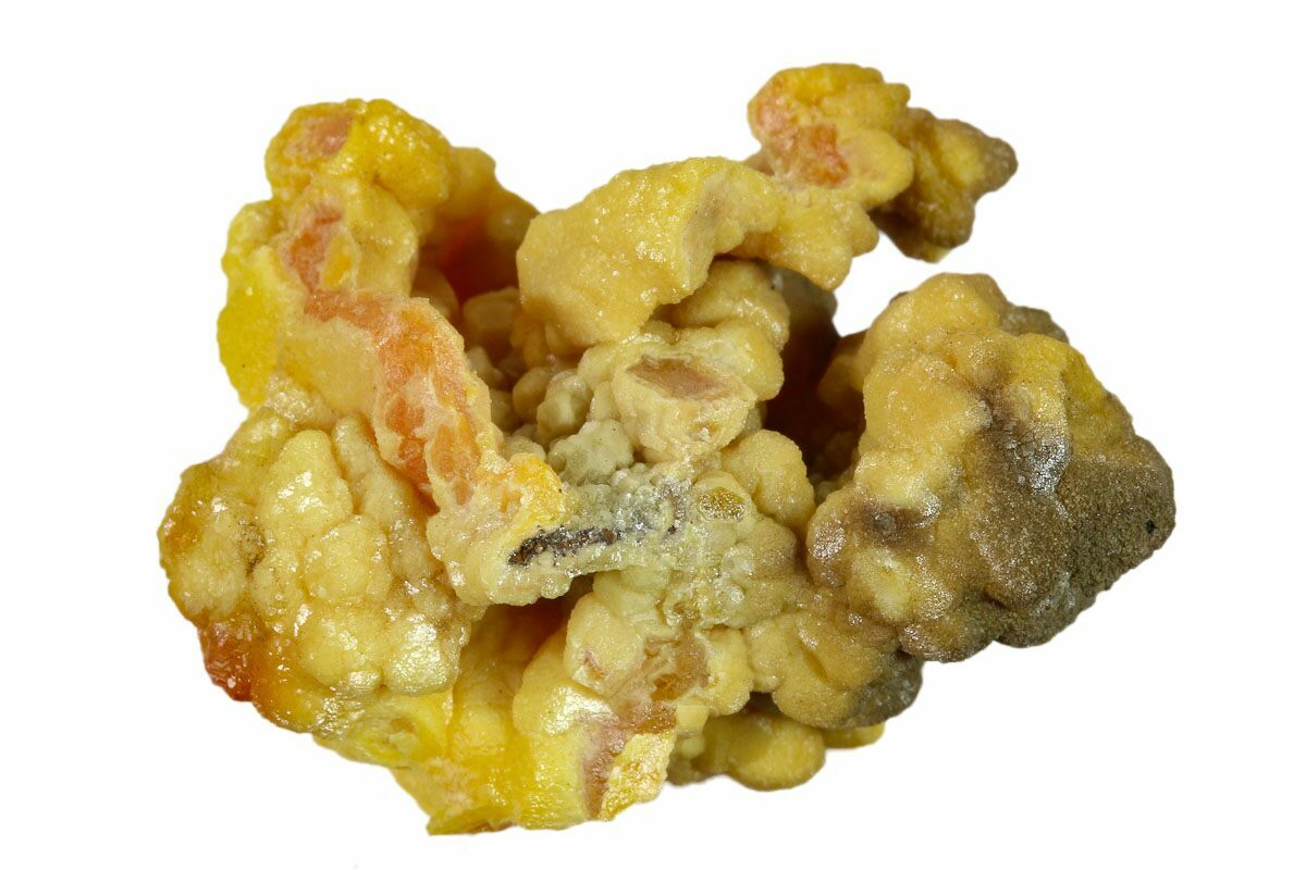 This is a beautiful formation of yellow-orange globular vanadinite, collected from the ACIF mine in Mibladen, Morocco.