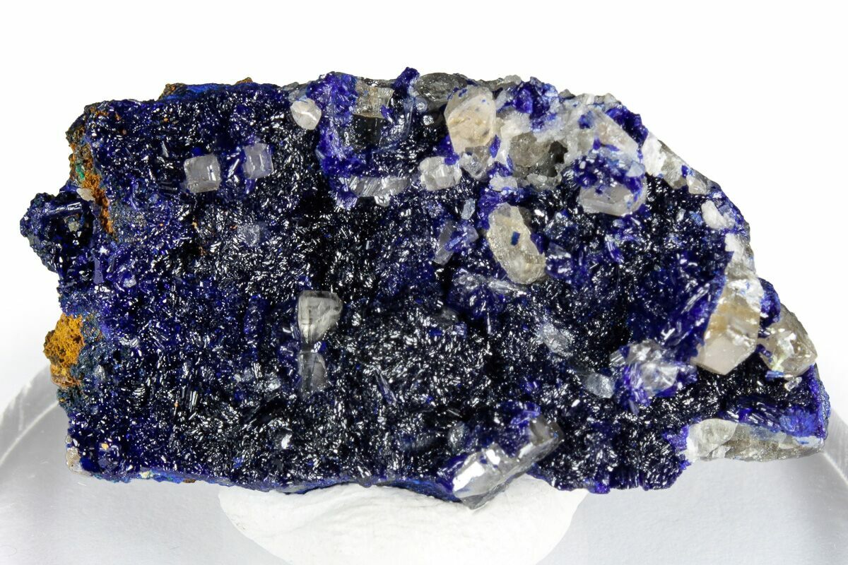 Azurite is a copper carbonate hydroxide mineral best known for its beautiful and vibrant blue appearance. Azurite typically forms in nodular formations with other colorful, copper-rich minerals. It is a secondary mineral that precipitated in pores, crevices, and caverns from water with high concentrations of carbon dioxide.